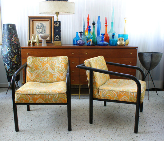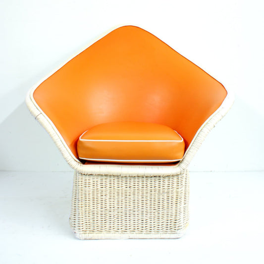 Pair of 1970s Arthur Elrod Orange Spade Large Lounge Chairs by McGuire Hollywood Regency Palm Beach Modern