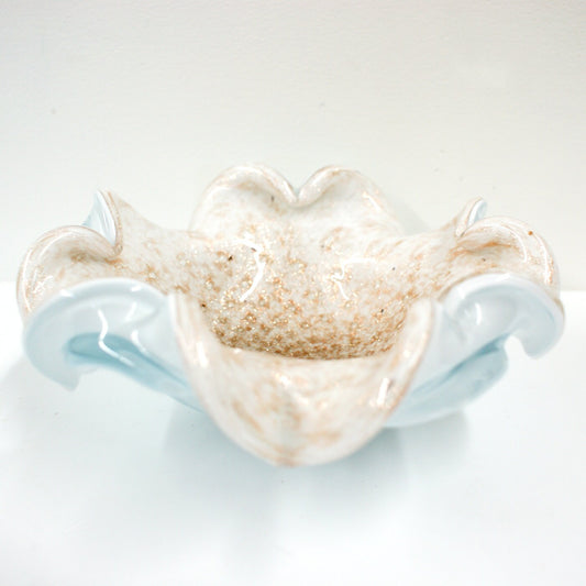 Seguso Murano Art Glass Candy Dish White with Copper Flecks Mid Century Modern