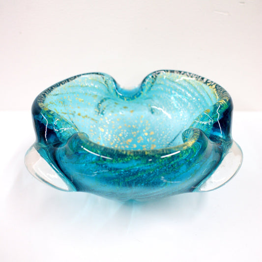 Seguso Murano Art Glass Candy Dish Blue with Gold Flecks Mid Century Modern