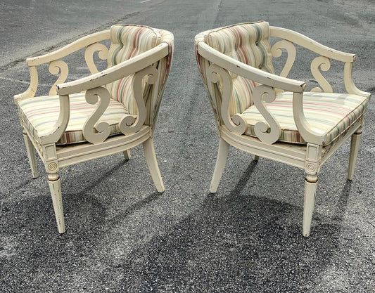 Vintage Pair of Dorothy Draper Style Regency Arm Chairs