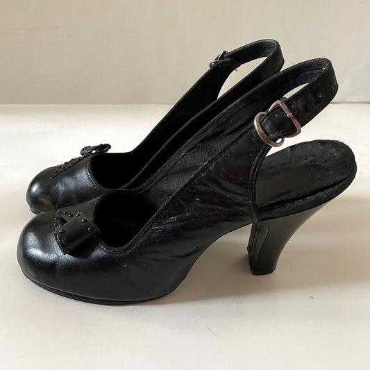 Vintage 1940-50s High Heel Shoes Round Toe Pin-up Pumps