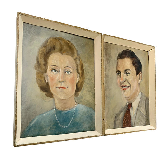 Vintage Couple Portrait Paintings Dated 1946 Germany