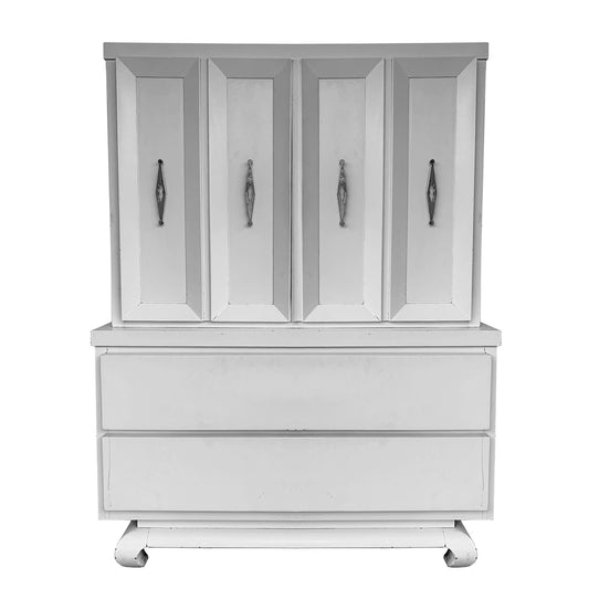 Vintage American of Martinsville White Highboy Dresser Asian Style Ming Base