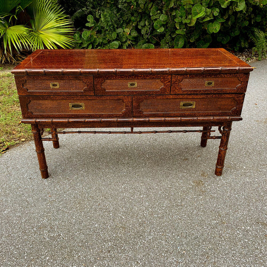 Vintage Faux Bamboo 9 Drawer Dresser by Bassett Regency Palm Beach