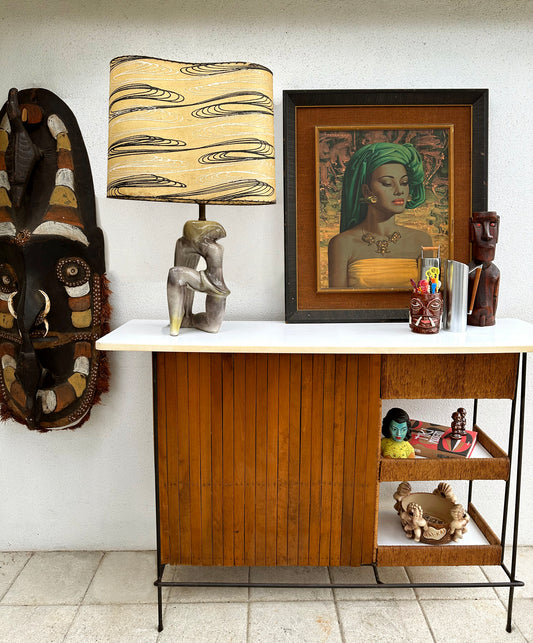 Vintage Arthur Umanoff Bar Wrought Iron Wood Slat Mid Century Modern