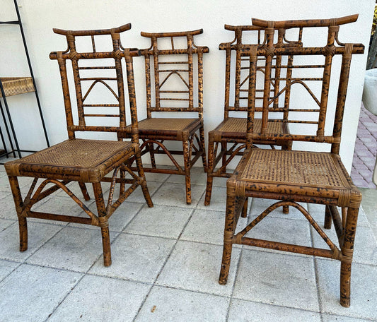 Vintage Burnt Bamboo Pagoda Dining Chairs set of 4