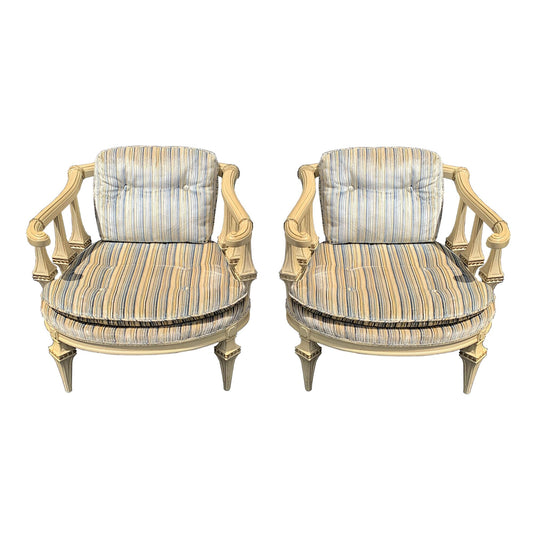 Vintage Regency Pair of Lounge Chairs Dorothy Draper Style